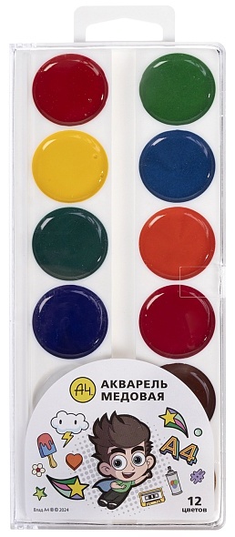 Краски Акварелные медовые полусухие 12 цв. Hatber -Влад А4, 087650