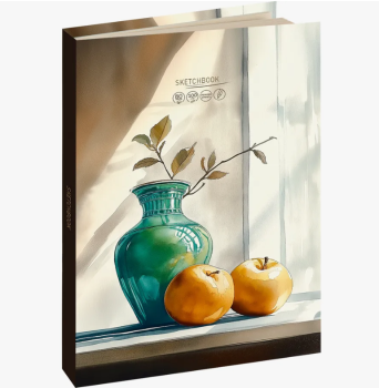 Скетчбук А5, 80л, на резинке, Ваза и яблоки, 80-9624