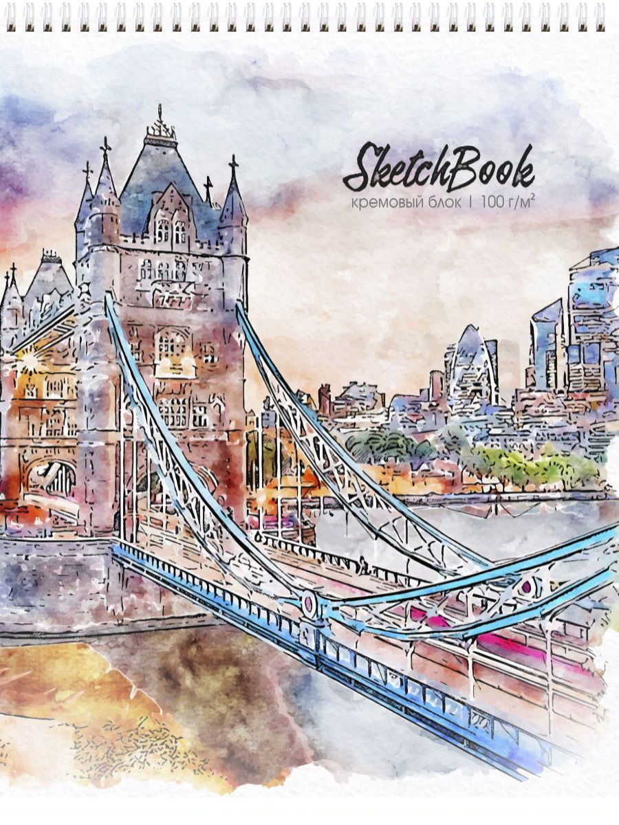 Скетчбук А3, 100г, Мост акварелью, 30л, 30-0351
