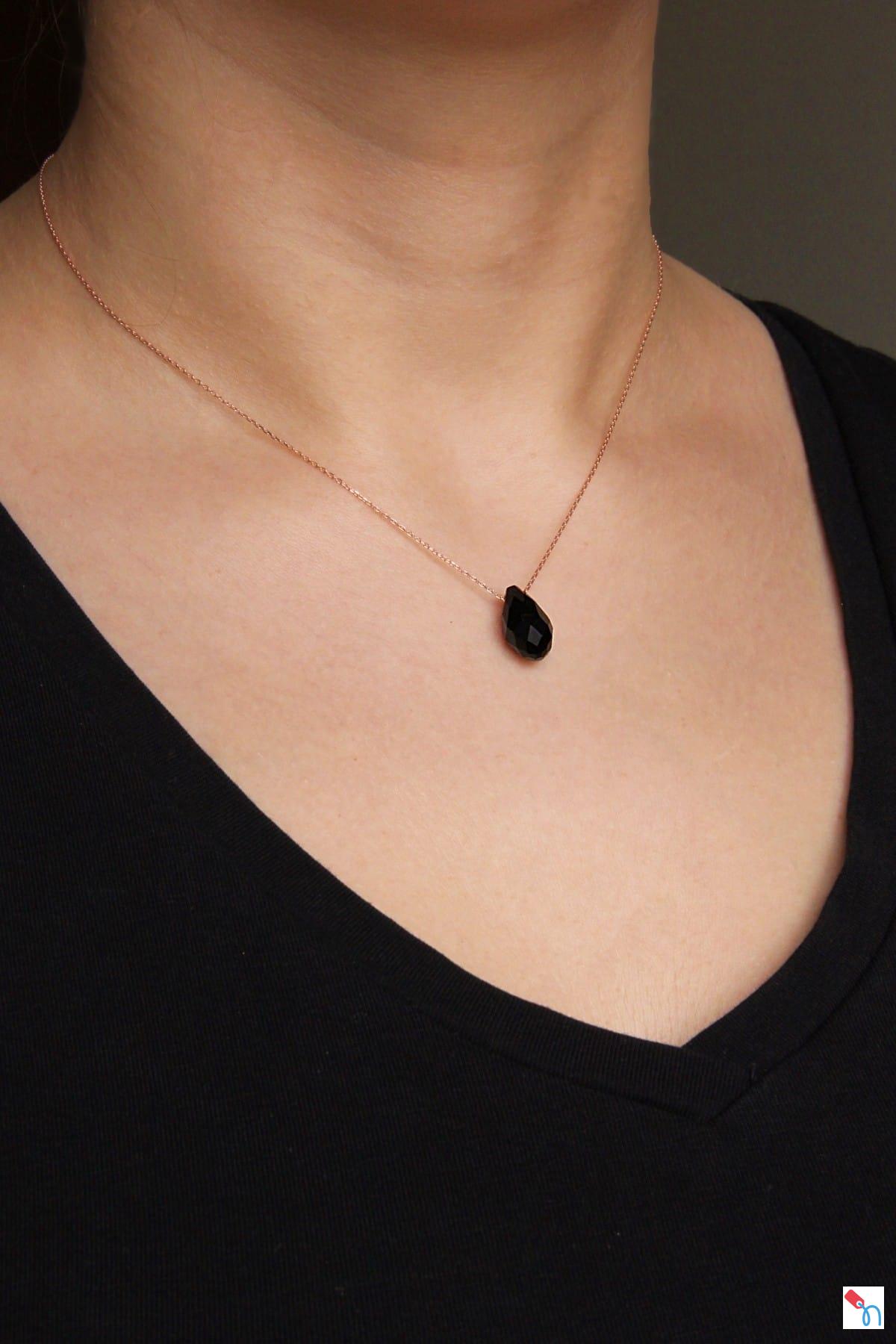 Maden: 925 Ayar Gümüş, Rose Altın Kaplama Ağırlık: 1.8 gr Ebat: 1.5 cm Zincir: 42cm Taş: Oniks