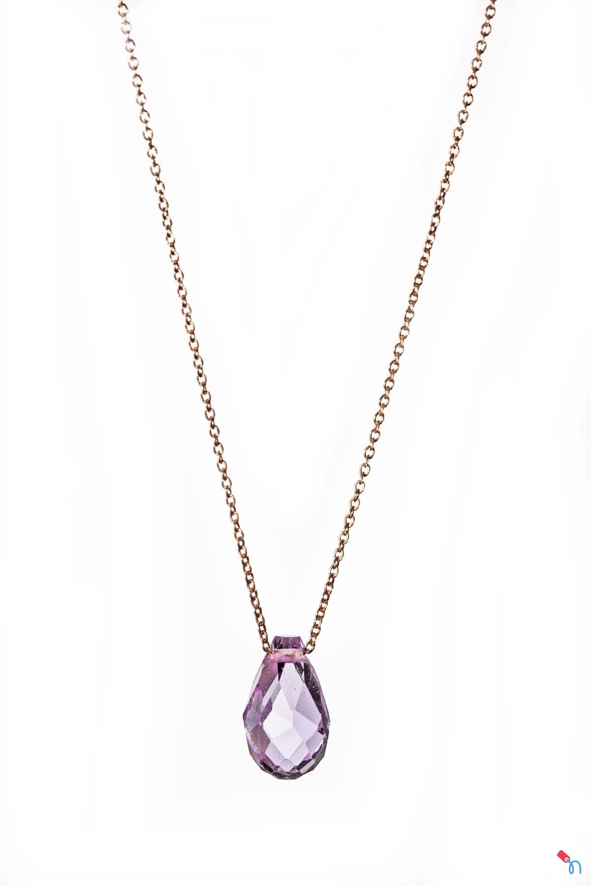 Maden: 925 Ayar Gümüş, Rose Altın Kaplama Ağırlık: 1.9 gr Ebat: 1.5 cm Zincir: 42cm Taş: Ametist